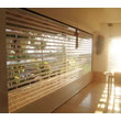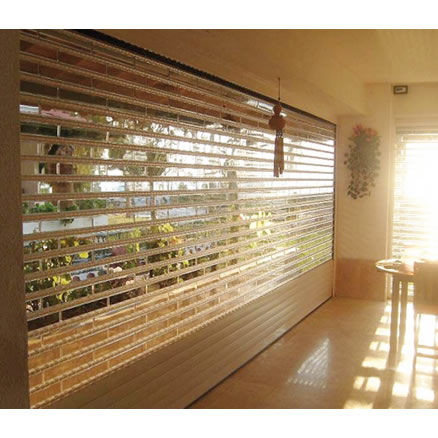 Las cortinas de acero enrollables MERIK Serie 4000 cuentan con un sistema de montaje único TRANSPAFORZA hace que sea posible combinar duelas transparentes con duelas de aluminio o de acero, a fin de formar bandas transparentes sobre un configuración especial o estandar.
